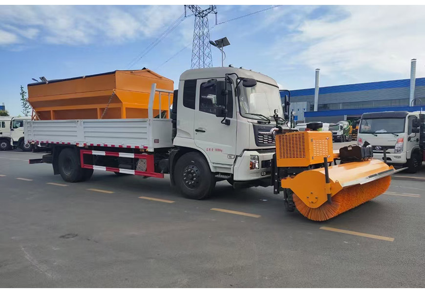 | 上裝配置 | 整體避障除雪鏟,夜間工作燈,車取力重型除雪鏟(左右雙液壓驅(qū)動)可搭配8立方或者10立方融雪撒布機(獨立柴油動力,鏈條刮板輸送,采用V型料倉,頂部帶防雨罩,折疊式不銹鋼撒布盤)3-3.5米雪鏟、3-3.5米雪鏟及撒布機均采用集成按鍵駕駛室操作。 | ||