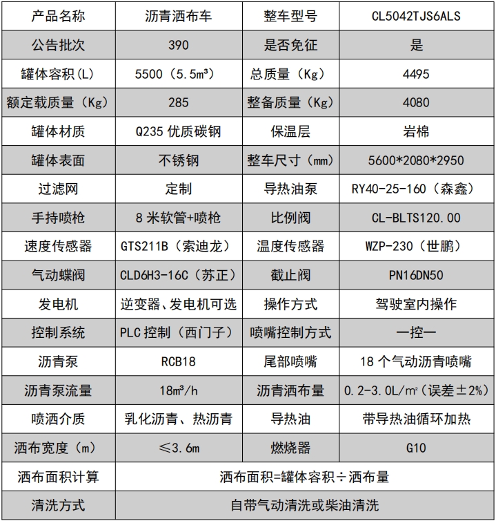 ??????湖北程力汽車(chē):程力CL5042TJS6ALS福田領(lǐng)航 5.5 方藍(lán)牌智能瀝青灑布車(chē)產(chǎn)品型號(hào)及參數(shù)配置,程力CL5042TJS6ALS福田領(lǐng)航 5.5 方藍(lán)牌智能瀝青灑布車(chē)高清圖片,程力汽車(chē)系列程力CL5042TJS6ALS福田領(lǐng)航 5.5 方藍(lán)牌智能瀝青灑布車(chē)最新報(bào)價(jià)請(qǐng)撥打客服熱線。整車(chē)技術(shù)參數(shù) 產(chǎn)品商標(biāo) 程力牌 公告批次 390 產(chǎn)品名稱(chēng) 水泥凈漿灑布車(chē) 產(chǎn)品型號(hào) CL5042TJS6ALS 總質(zhì)量(Kg) 4495 罐體容積(m3) 額定載質(zhì)量(Kg) 285,220 外形尺寸(mm) 5600 × 2080 × 2950 整備質(zhì)量(Kg) 4080 貨廂...