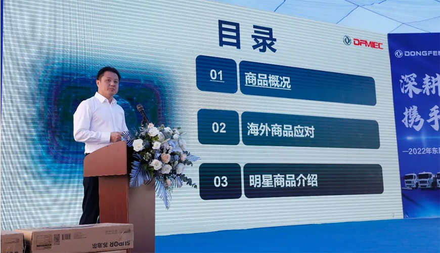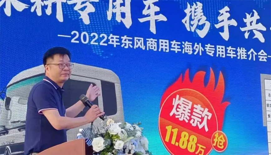 中國東風(fēng)汽車工業(yè)進出口有限公司總經(jīng)理助理楊濤在活動中,做了重要講話。他強調(diào),首先要感謝程力集團一直以來,與東風(fēng)公司全面戰(zhàn)略合作和大力支持,并向參加推薦會的來賓與銷售經(jīng)理表示誠摯的問候。
