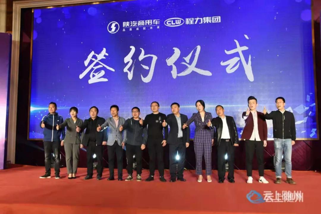 程力陜汽商用車底盤事業(yè)部負責(zé)人高波宣布了新產(chǎn)品價格和團購政策,與合作代表進行了簽約儀式,并合影紀念。