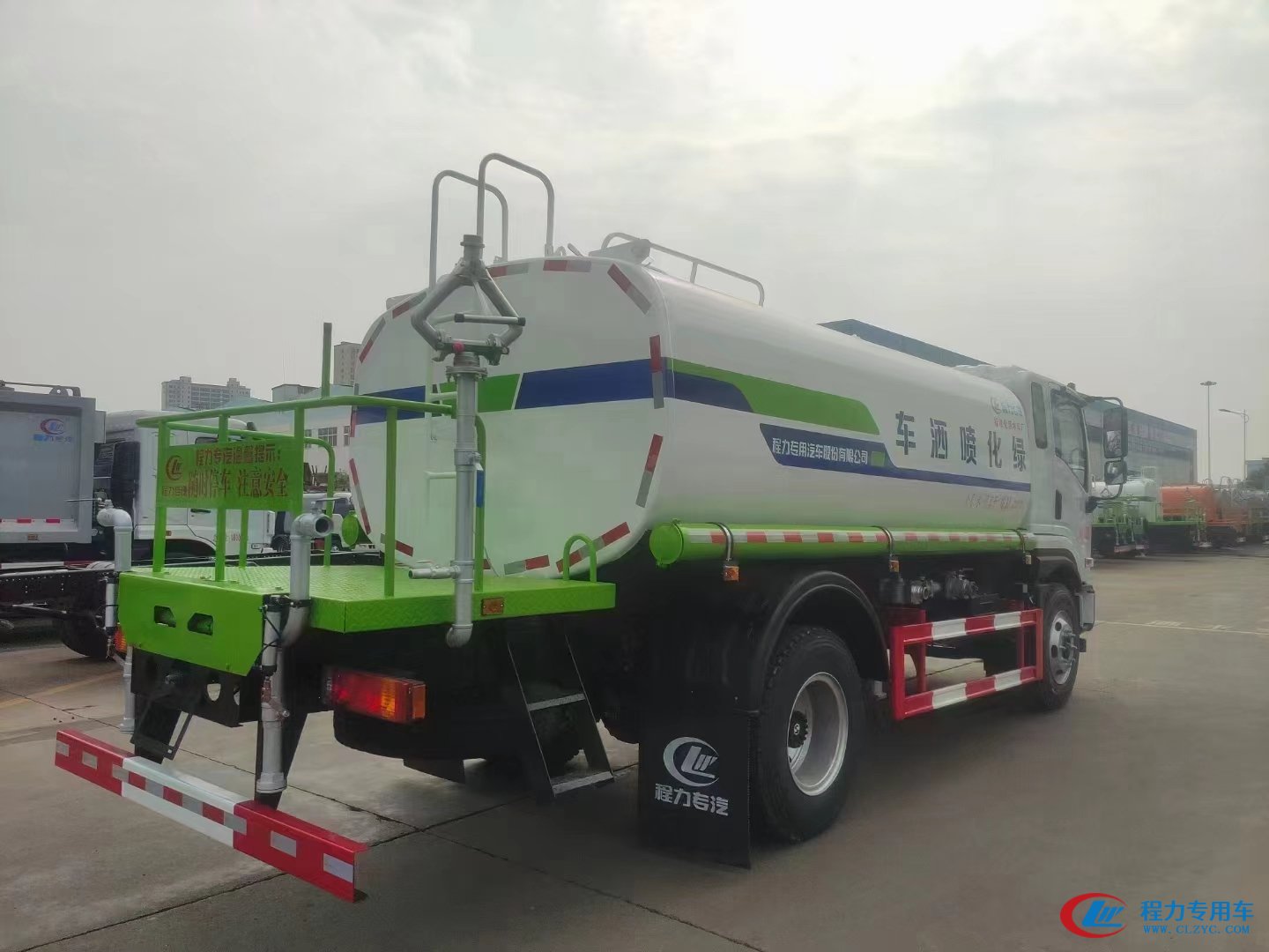 | 上裝配置 | 上裝武鋼優(yōu)質(zhì)碳鋼板,容積12立方,厚度4mm,封頭5mm,前后封頭機(jī)器人自動焊,內(nèi)設(shè)隔浪板,帶液位計, 配程力原廠大功率灑水泵,帶駕駛室電控操作,前沖后灑4個新式不銹鋼切斷閥,前沖 后灑 側(cè)噴 后高炮,后高炮可調(diào)節(jié)柱狀 雨狀和霧狀,新式?jīng)_孔工作平臺,主管道加粗,副管道全采用優(yōu)質(zhì)鍍鋅管道,帶自吸自排,自流閥,消防接頭,過濾裝置,邊燈帶電,其他標(biāo)配… | ||